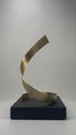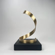 A piece of brush finished and hand formed solid brass is counterbalanced by a rich solid wood base to form this mixed media sculpture - a unique blend of minimalist representation and spiritual symbolism.